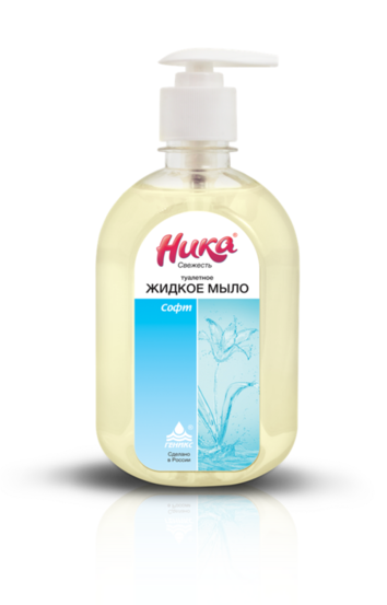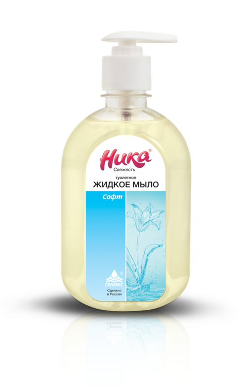 - Мыло жидкое туалетное НИКА – СВЕЖЕСТЬ ЗЕЛЁНОЕ ЯБЛОКО, АБРИКОС, СОФТ (без отдушки и красителя), Фл. ПЭТ 0,5 л с дозатором