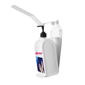 Держатель локтевой с пробкой дозатором с упором предназначен для порционной подачи на кожу рук антисептических средств, дезинфицирующих средств или жидкого мыла из пластмассовых емкостей.