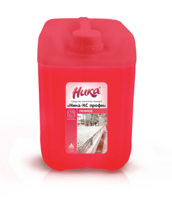 Кислотное моющее средство «Ника-КС профи пенное» предназначено для кислотной очистки, удаления сложных минерально-органических отложений: "молочный камень", "водный камень"; известковых и прочих минеральных загрязнений; солей; жесткости; ржавчины; для очистки различных видов технологического оборудования и тары (в том числе оборотной), различных технологических емкостей, теплообменного водонагревательного оборудования: резервуаров, трубопроводов, смесителей, охладителей, сепараторов; для очистки бутылкомоечных машин, для очистки коммуникаций, стеклянных бутылей и инвентаря, а также поверхностей помещений на предприятиях молочной промышленности. Также средство подходит для санитарной обработки (мойки) оборудования, инвентаря, тары и поверхностей производственных помещений на предприятиях мясной промышленности.