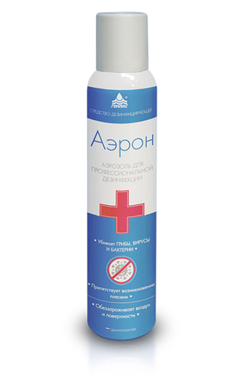 • Также аэрозоль «Аэрон» подходит для дезинфекции небольших по площади поверхностей и для борьбы с плесенью.