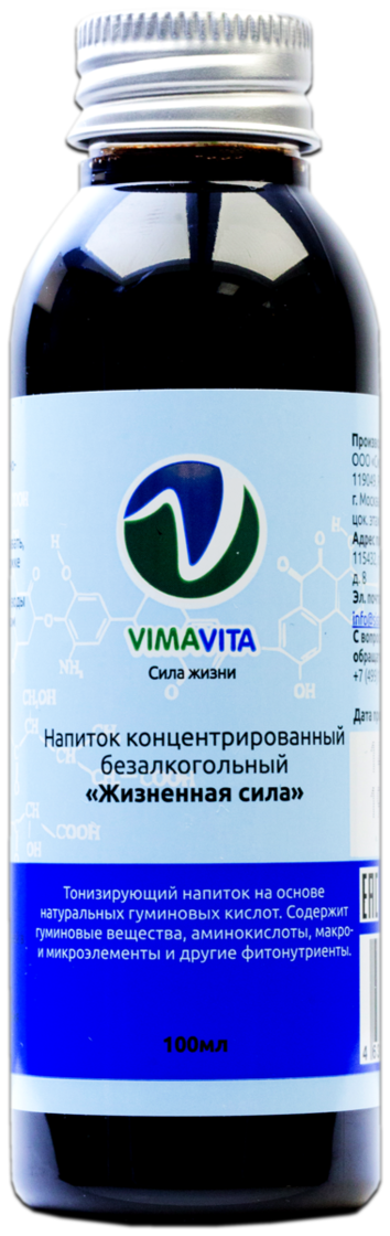 Напиток концентрированный безалкогольный «Жизненная Сила» 100 мл- комплекс биологически-активных веществ, выделенных из природного экологически чистого сырья по «зелёной» технологии: гуминовые и фульвовые кислоты, дополнительно активированные в процессе изготовления средства, что объясняет их высочайшую проницаемость в клетку и высокий осмотический потенциал. Благодаря естественному происхождению гумино-фульвовые кислоты бережно действуют на организм человека, имеют широкий спектр действия, не вызывают привыкания и аллергических реакций, способствуют выводу аллергенов. АА